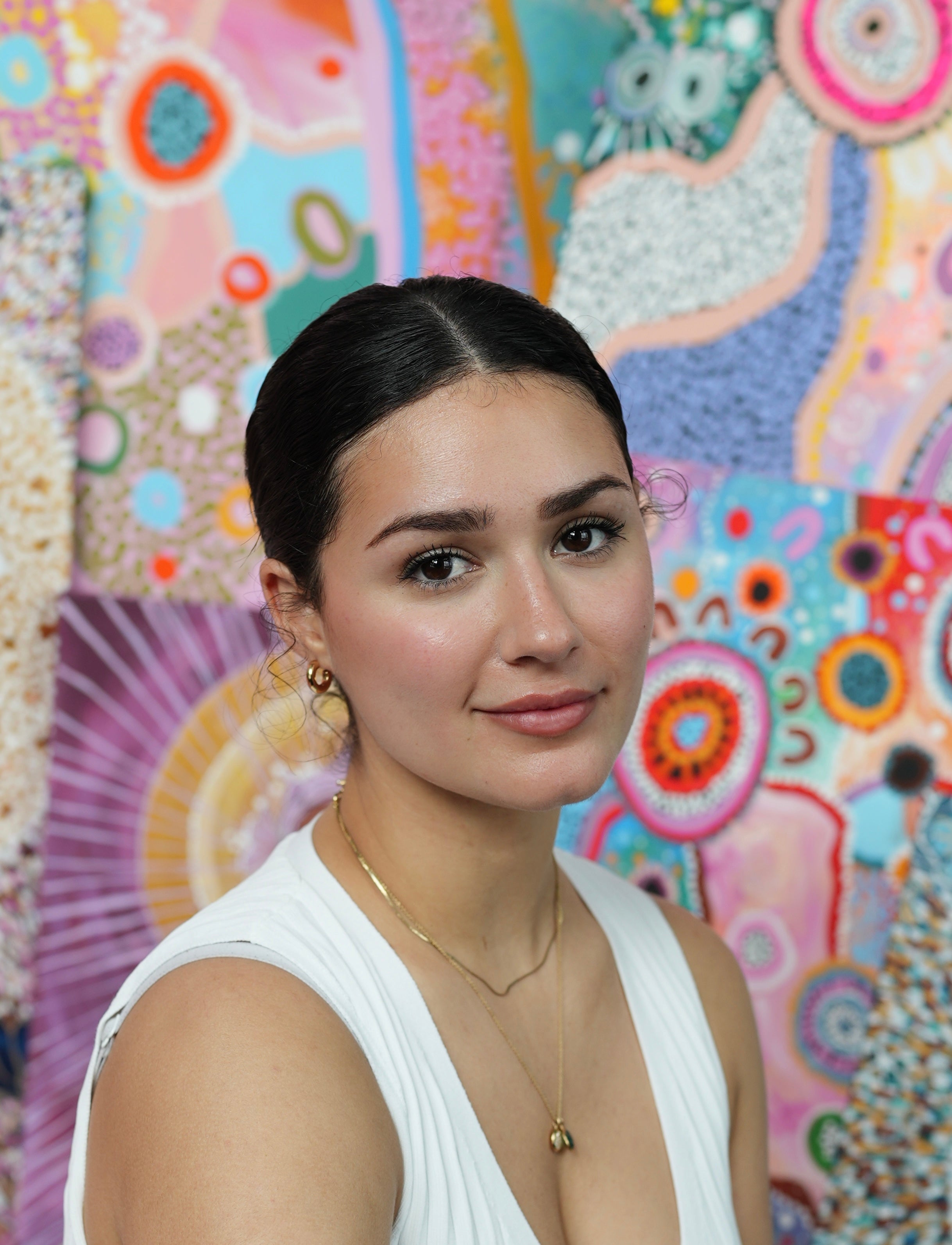 I am the artist behind Mulganai. I am a Kaanju, Kuku Ya’u and Girramay woman from North Queensland, Australia. My work reflects my own story as a young Indigenous woman navigating a modern world, and it pays homage to my ancestors, family, and community. I draw inspiration from my experiences, the world around me, and from my childhood which was spent exploring my traditional Country with my family.